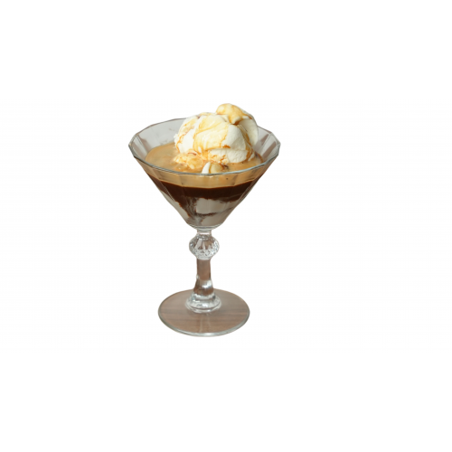 Islak kek arası dondurma üzerine belçika çikolatası ile servis edilir.