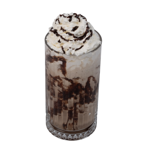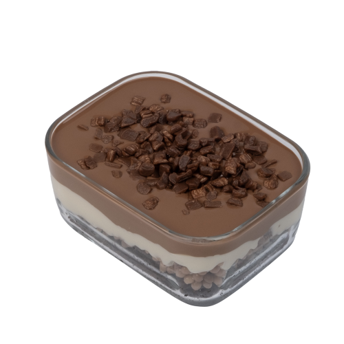 Bardak içerisine Özel krema, Kek parçaları, Sü.tlü çikolata eklendikten sonra Flakes serpiştirilerek servis edilir