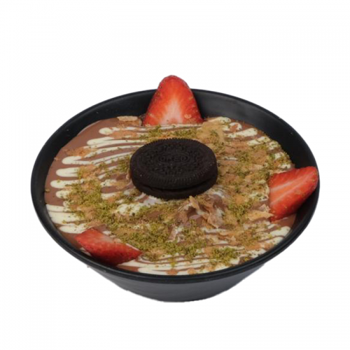Özel krema, büyük Oreo parçaları, krep kırığı, muz, çilek, sütlü çikolata konulduktan sonra üzerine krep kırığı ve antep fıstığı serpiştirilerek servis edilir.